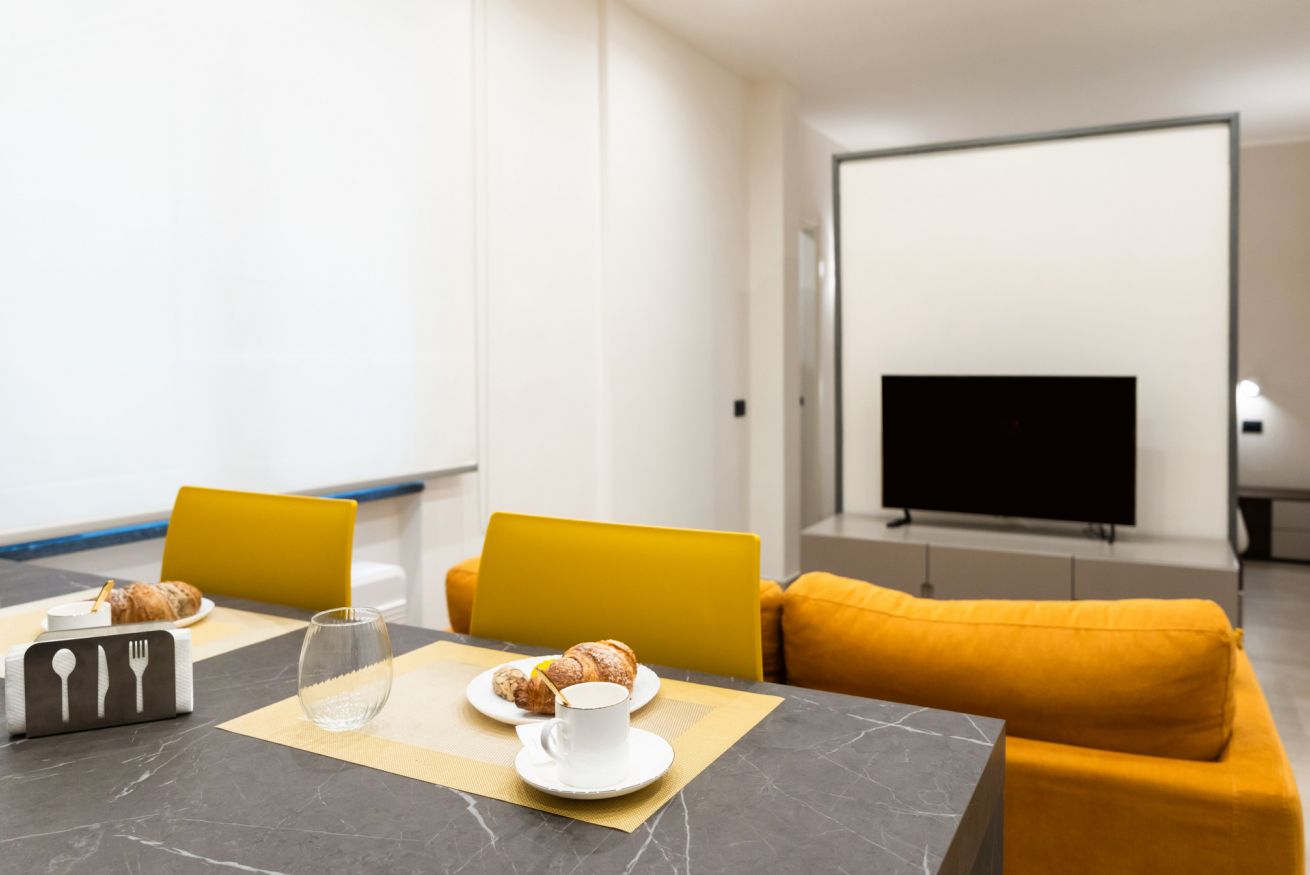 • Zona living con soggiorno e area pranzo in un unico spazio arioso e luminoso