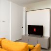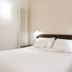 • Camera da letto separata da una parete divisoria, con armadio illuminato e specchio